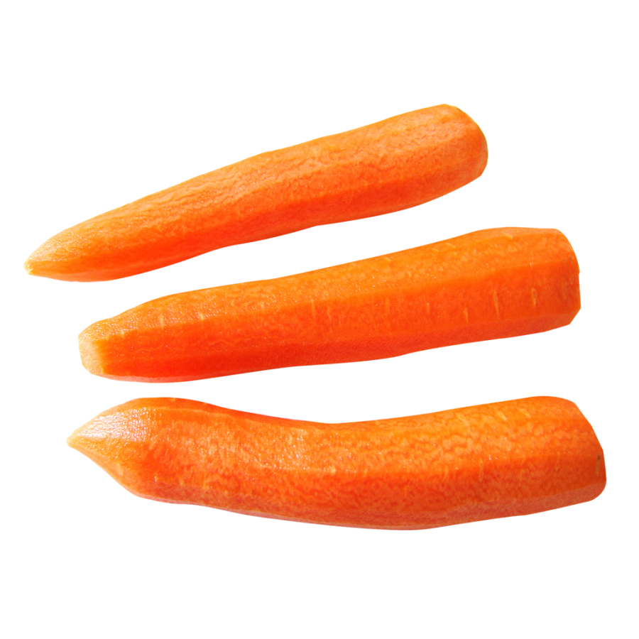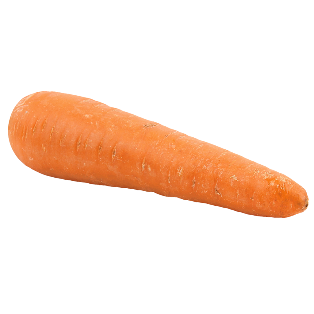 Carrots are narrow and cone shaped. They have thick, fleshy, deeply colored root, which grows underground, and feathery green leaves that emerge above the ground.